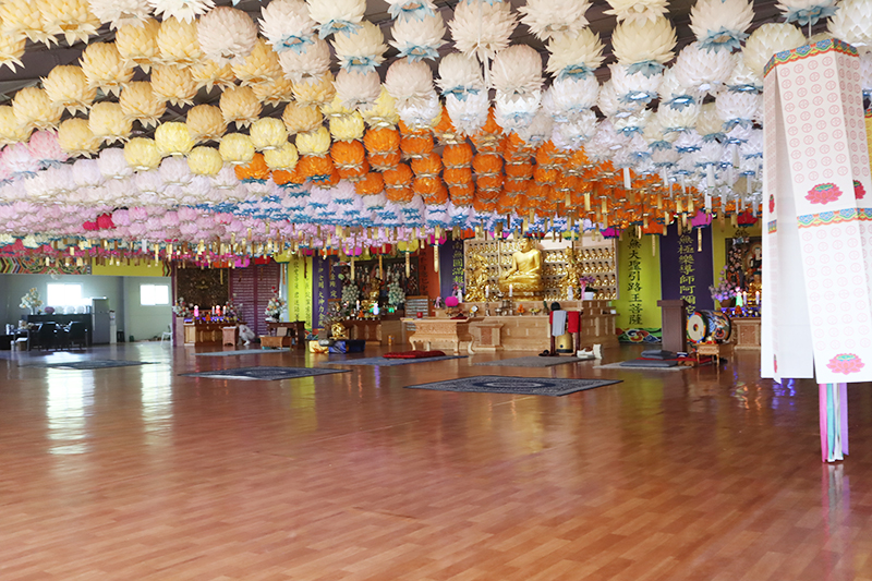 석가모니부처님.문수보살.보현보살님 삼존불을 모시고 정기 법회·초하루·보름 법회가 봉행되며, 신도님들의 소원성취 기도와 백중·49재 등 모든 불사의 근본 도량이 되는 성스러운 공간입니다.
